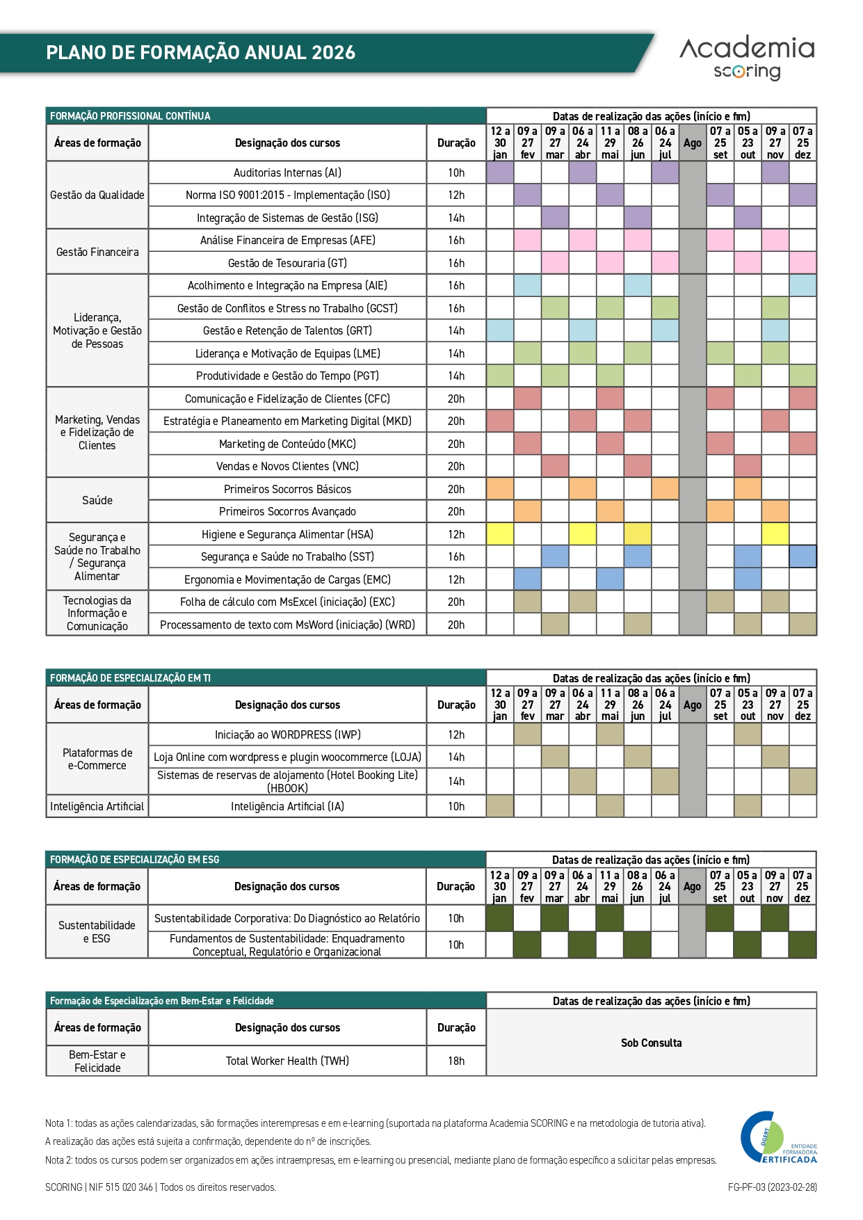 Calendário Anual de formação 2026